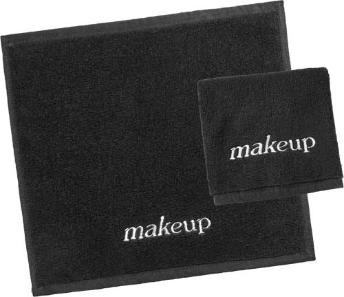 Protect your bath linens while offering guests a thoughtful convenience with our Makeup Remover Towel. Crafted from 100% soft terry cotton, this plush black towel features crisp white embroidered “Makeup” lettering and a long-lasting dark color that helps conceal makeup stains. Designed to safeguard bath towels from cosmetics, it supports cleaner rooms and reduced linen replacement costs. The sturdy, machine-washable towel measures 13" x 13" and is sold in a convenient case quantity of 12, making it an ideal, reliable addition to any guest bathroom.
